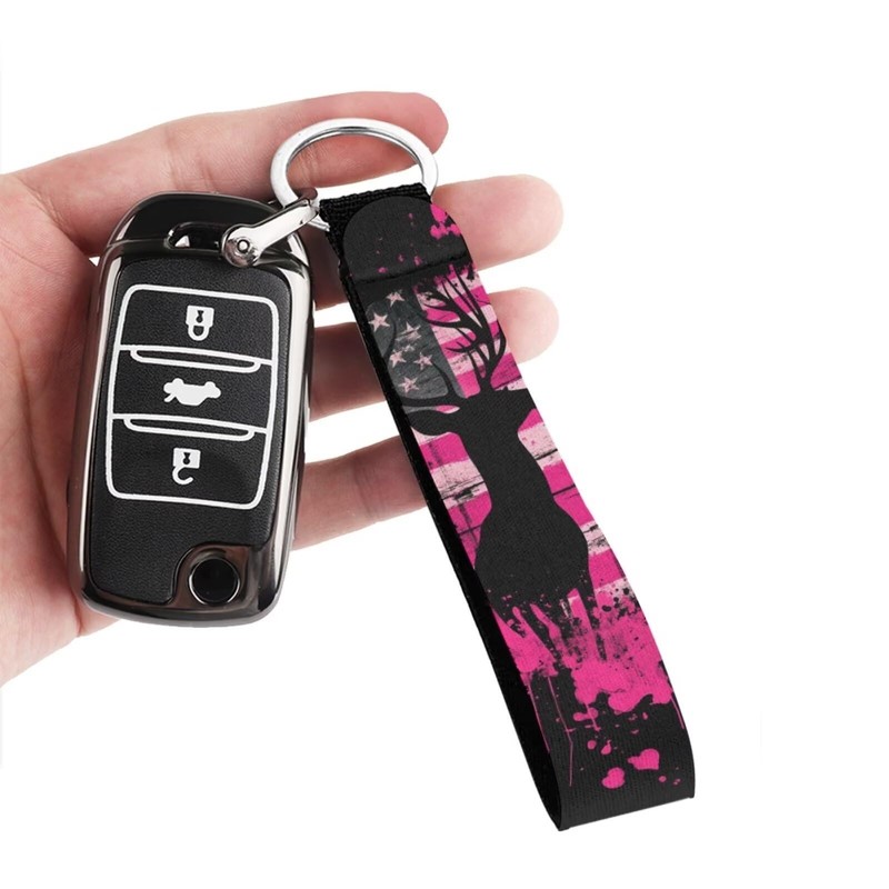 FKELYI Deer American Flag Wrist Keychain for Women Pink Wrist Lanyard for Keys Hand Wrist Strap Key Chain Holder