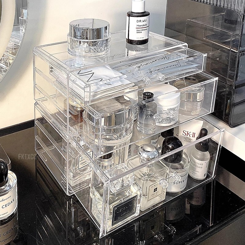 - Dust-Proof & Anti-Slip Design The fully enclosed Skincare Organizer protects contents from dust and moisture, ideal for storing hard-to-clean makeup tools like brushes and sponges. The anti-slip base prevents shifting when opening drawers, making it perfect for humid bathrooms or bedroom vanities to store daily-use skincare and cosmetics.