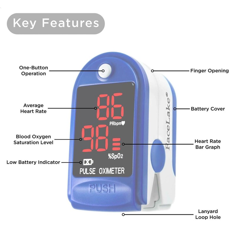 FaceLake ® FL400 Pulse Oximeter Fingertip with Carrying Case, Batteries, Lanyard, and Warranty (Blue)