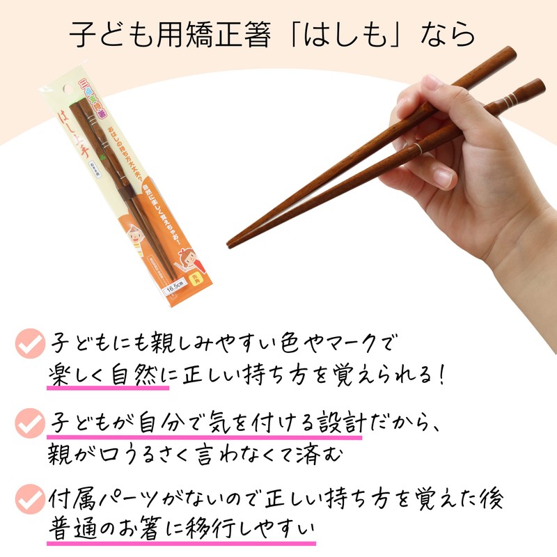 - Specifications: Product Name: Chopsticks: Jr. (children's orthopedic chopsticks). Material: Natural wood. Paint: Polyester painting. Country of Origin: Japan. Size: Right Hand: 7.1 inches (18 cm), 6.5 inches (16.5 cm), 5.9 inches (14 cm); For left hand drawing. Contents: 1 pair of chopsticks. Care instructions: Hand wash recommended. Note: There are right and left handed chopsticks. Choose the right one. The chopsticks are designed to allow children to have a fun way to hold their chopsticks correctly. With a variety of sizes to fit your child's growth, the left handed kids will remember to provide a comfortable environment for every child to practice