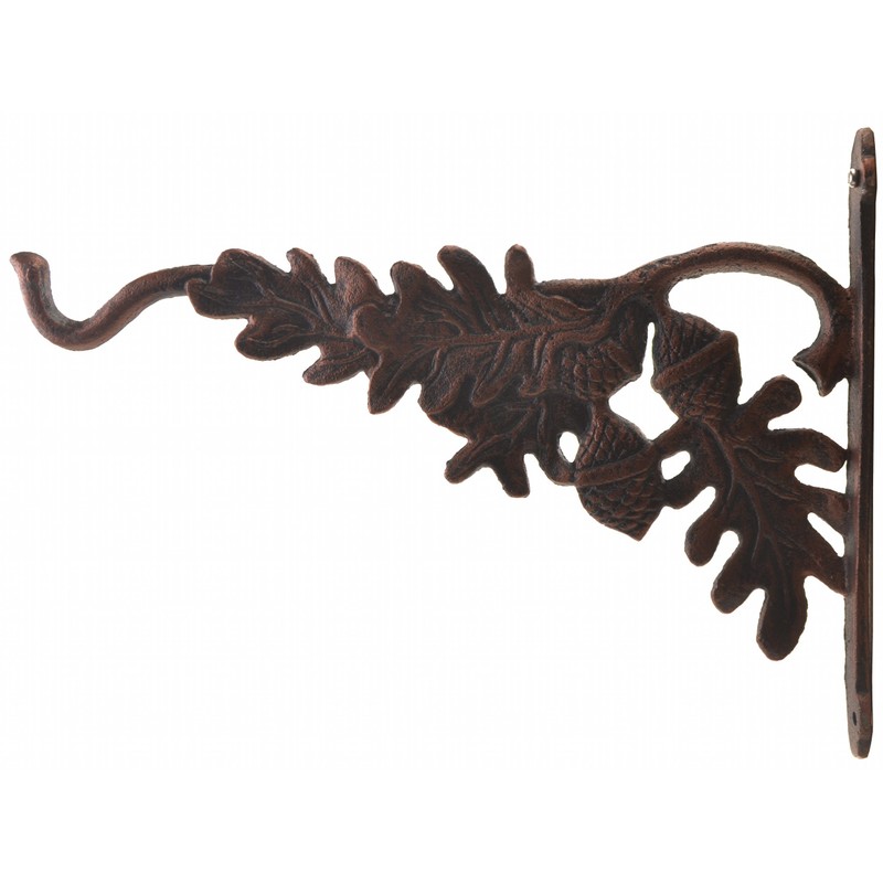 FLAG EMOTES Decorative Plant Hanger Oak Leaf & Acorn Heavy Duty Cast Iron Hanging Flower Basket Hook 12.625" Deep for Planter or Windchime
