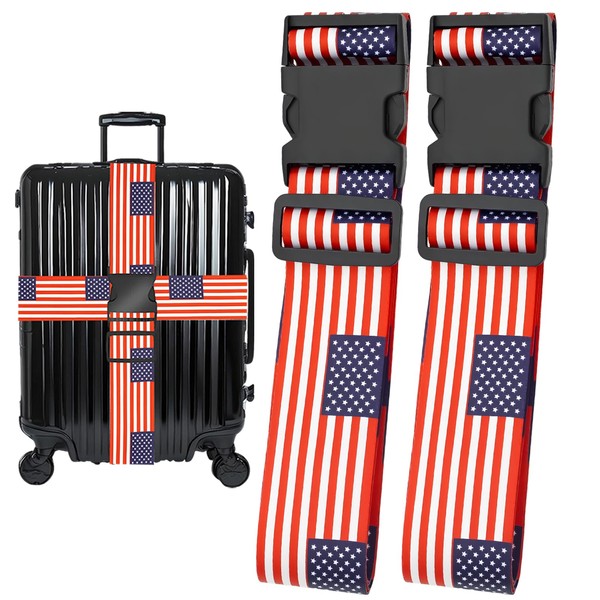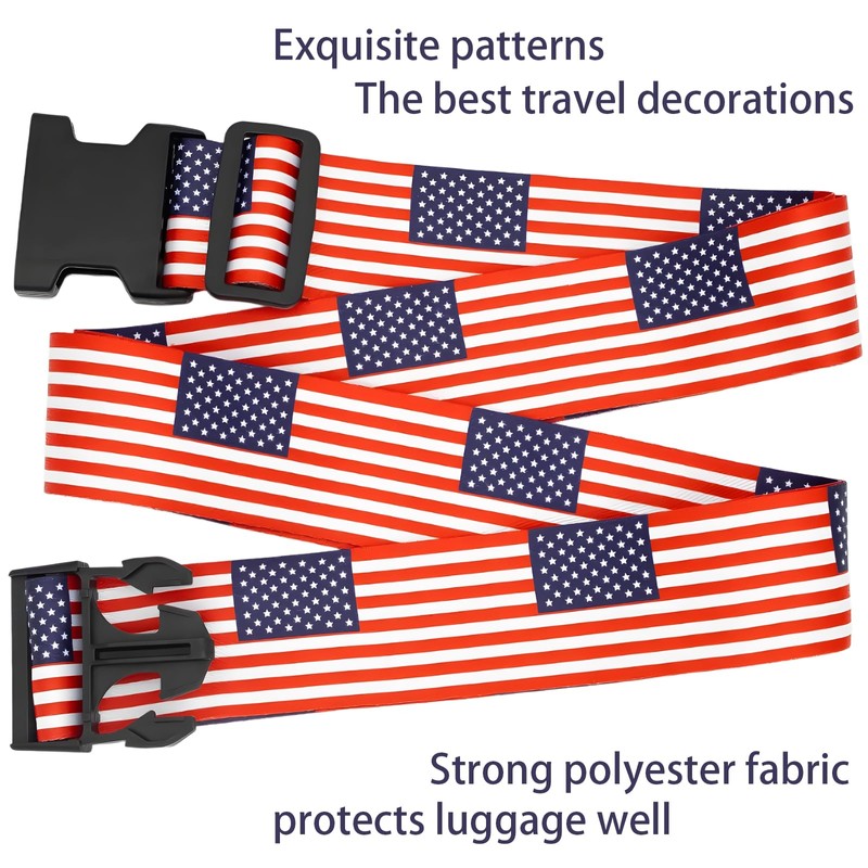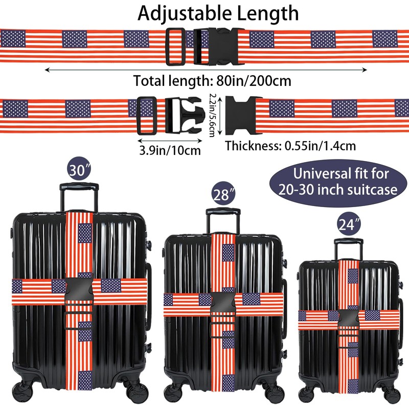 Flag Luggage Straps for Suitcases, Adjustable Luggage Travel Belt to Keep Luggage Security While Travel, Strong Polyester Fabric, Easy-to-Recognize Stylish Pattern Travel Essentials, 2 Pack