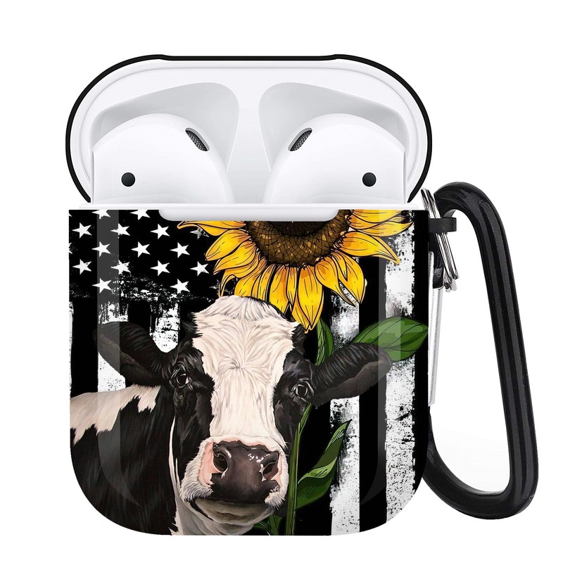 Flag Sunflower Cow Airpods Case Compatiable with Airpods 1 & 2 - Airpods Cover with Key Chain, Full Protective Durable Shockproof Personalize Wireless Headphone Case