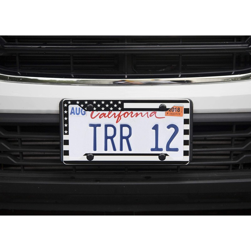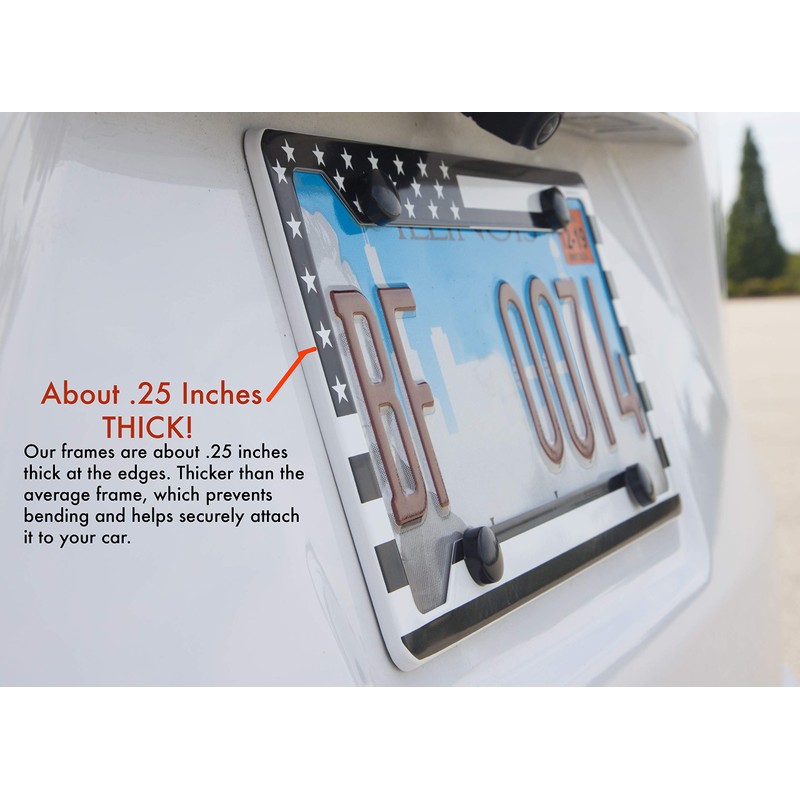 Flag-Themed License Plate Frame, High Grade 304 Stainless Steel (Black and White American Flag - 2 Pack)