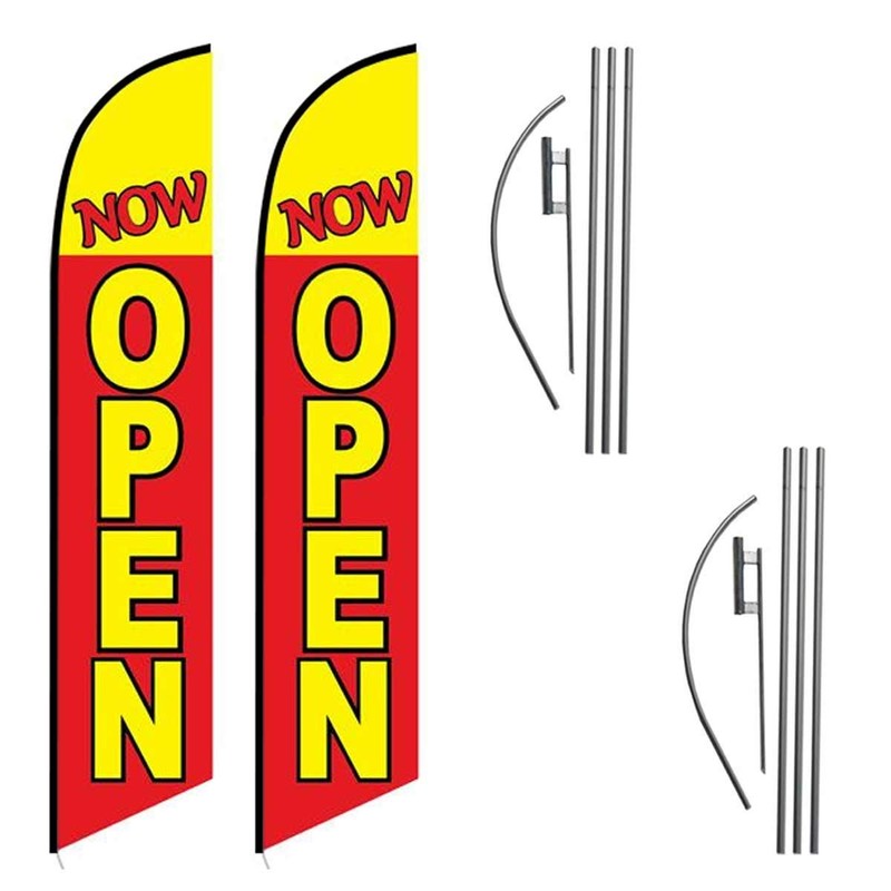 FlagPad 2 (Two) Now Open red/YEL 15' SWOOPER #3 Feather Flags KIT with Poles+Spikes (1)
