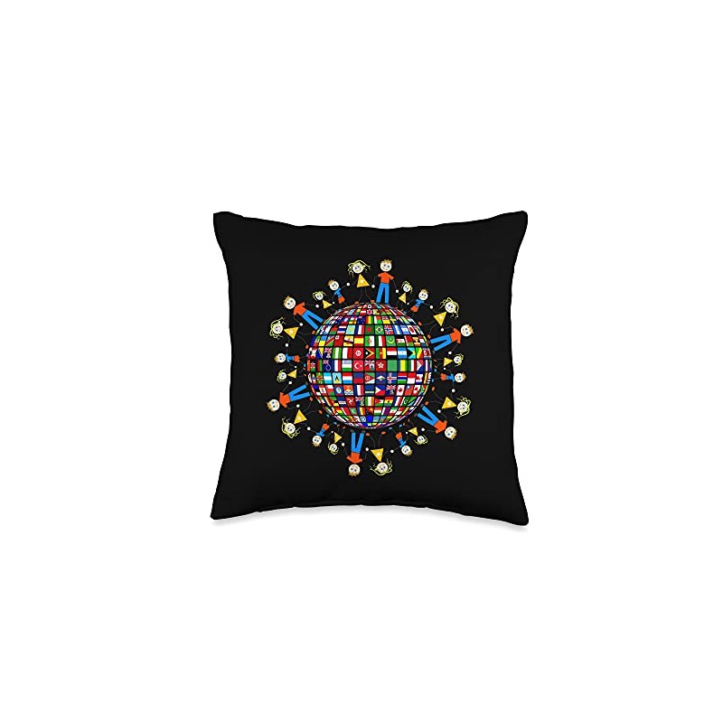 Flags of the World, Family around the Globe Throw Pillow, 16x16, Multicolor