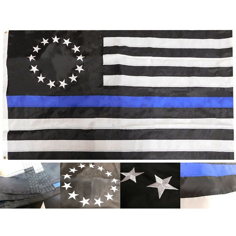 "Flags & Signs" Betsy Ross Thin Blue Line 3x5 3'x5' 150D Dura-Last Nylon Embroidered Flag a-1-4126