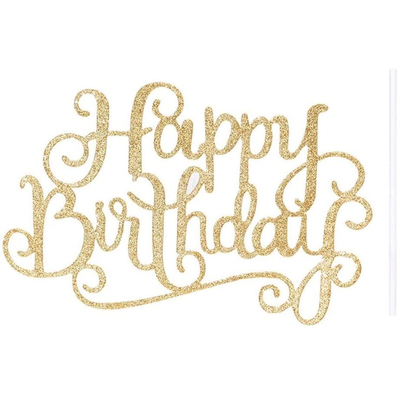 Flairs New York Happy Birthday Decorations Cake Toppers Party Props (Pack of 1 Cake Topper, Gold Glitter Happy Birthday)