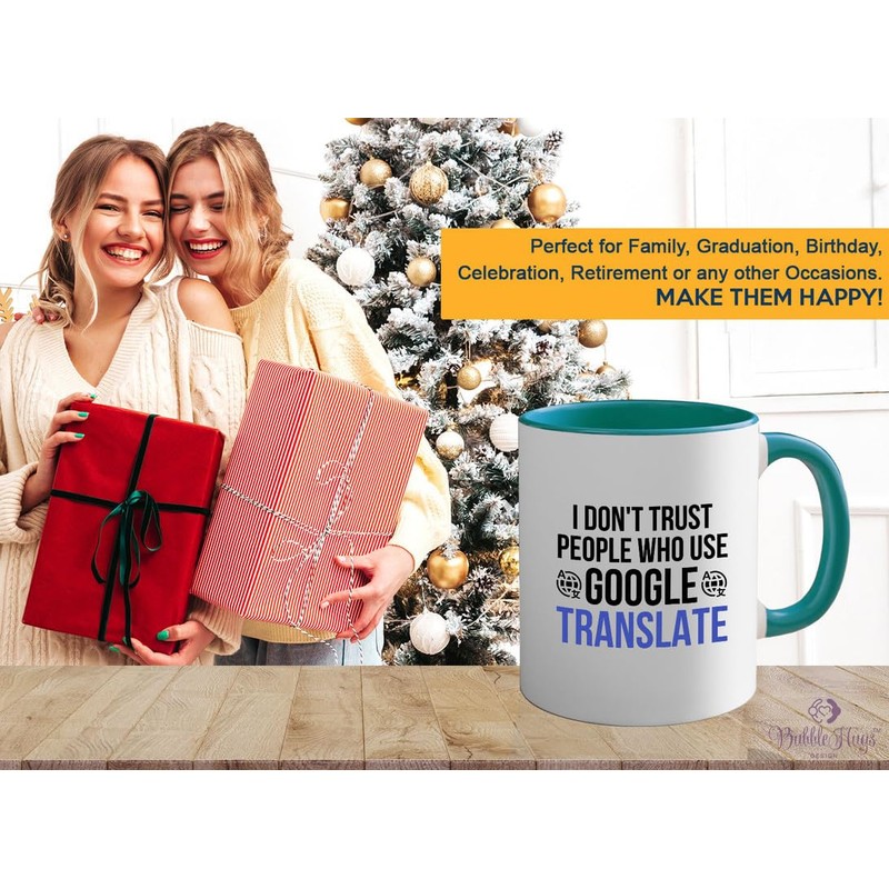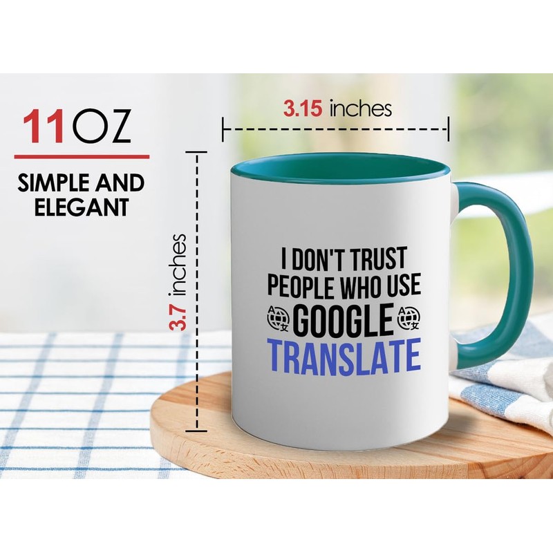 Flairy Land Translator 2Tone Mug 11oz Green -I Don't Trust People - Interpreter Teacher Language ESL Teacher Polyglot Multilingual Japanese Translator Spanish Translator