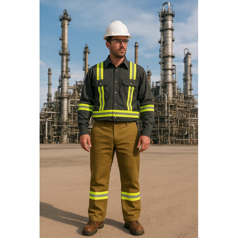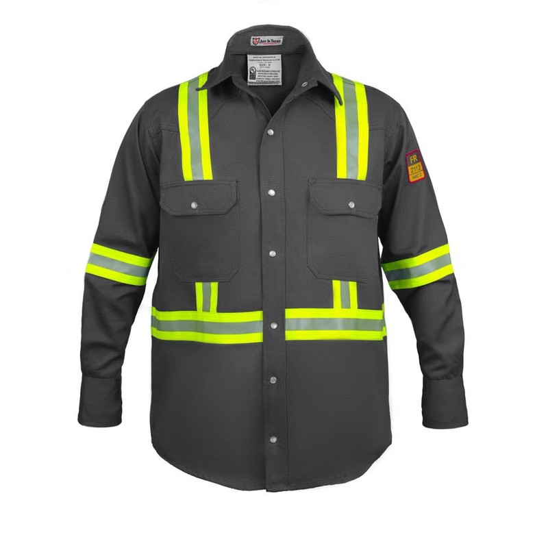 Flame Resistant High Visibility Hi Vis FR Shirt - 100% C - 7 oz (3X-Large, Dark Grey)