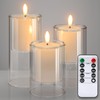- 【Glass Candles Battery Operated】The glass decorative candles set contains 3 pcs candles lights with different sizes, 10cm/4in,12.5cm/5in,15cm/6in, meets your different needs. Each flameless fake candles is powered by 2 AA batteries (not included), easy to use and portable. No annoying cables, you can place flickering candles anywhere as decoration, real and beautiful, beautiful at Christmas or any time of year.