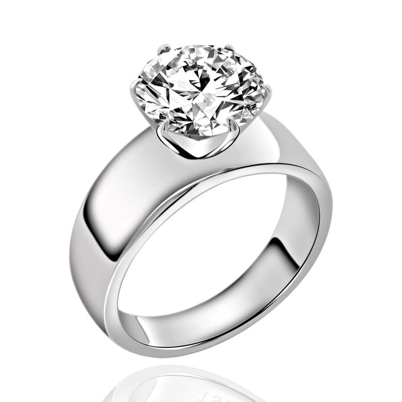 FlameReflection Stainless Steel 4 Carat Round Cubic Zirconia CZ Engagement Women Wedding Solitaire Promise Bands Ring size 7