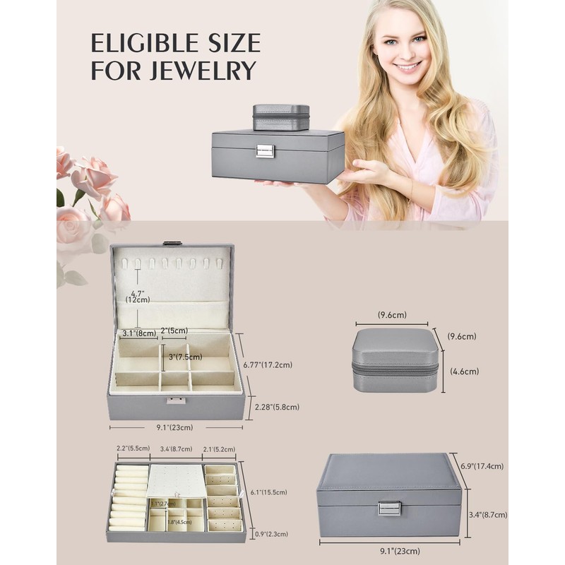 - HOME & TRAVEL SET - Our Jewelry box set consists of a desk-top jewelry box organizer and a small travel jewelry case, allowing you to dress with your favorite jewelry pieces everywhere. The larger one fits home drawer or dresser, and the small one is for travel essentials and business days. Removable compartments clear the room for storing earrings, rings, necklaces, bracelets, bangles and pendants, moving dividers to do custom room for different kinds of jewelry.