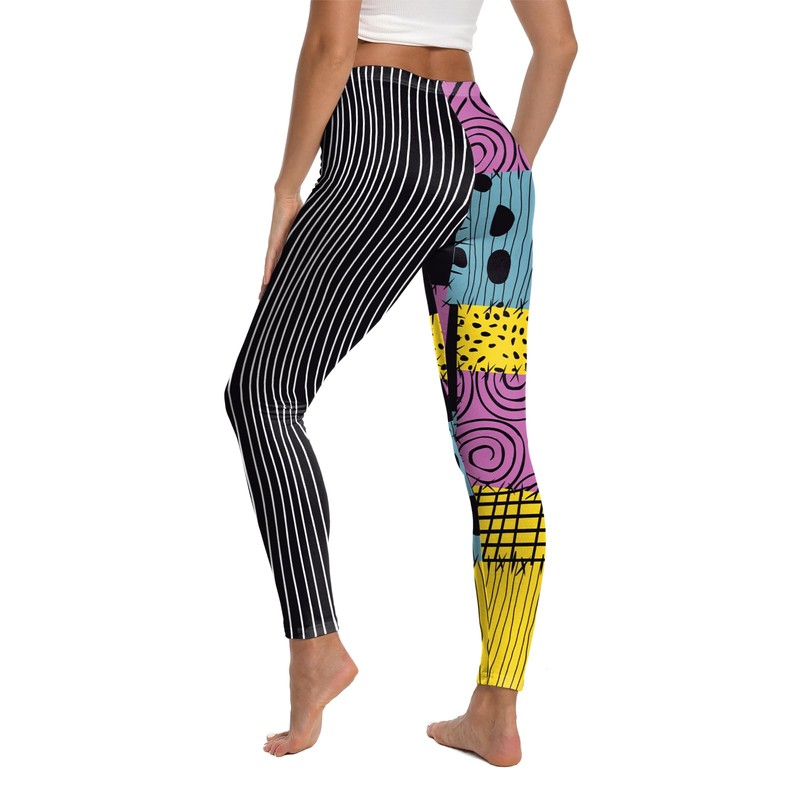 - Jack HALLOWEEN LEGGINGS - Unique patchwork design and Jack Striped Leggings that embodies Sally's stitched-together style, enhanced with modern gothic elements. for an elegant, timeless look that transitions seamlessly from day to night.