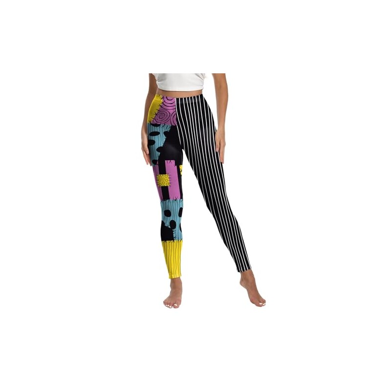 Flaminet Womens Sally Cosplay Halloween Leggings Stretchy Nightmare Patchwork Printed Costume Tights
