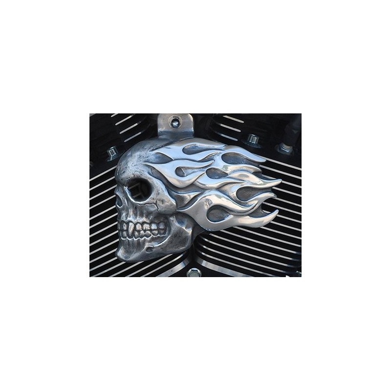 Flaming Skull Horn Cover in Aged Aluminum Finish