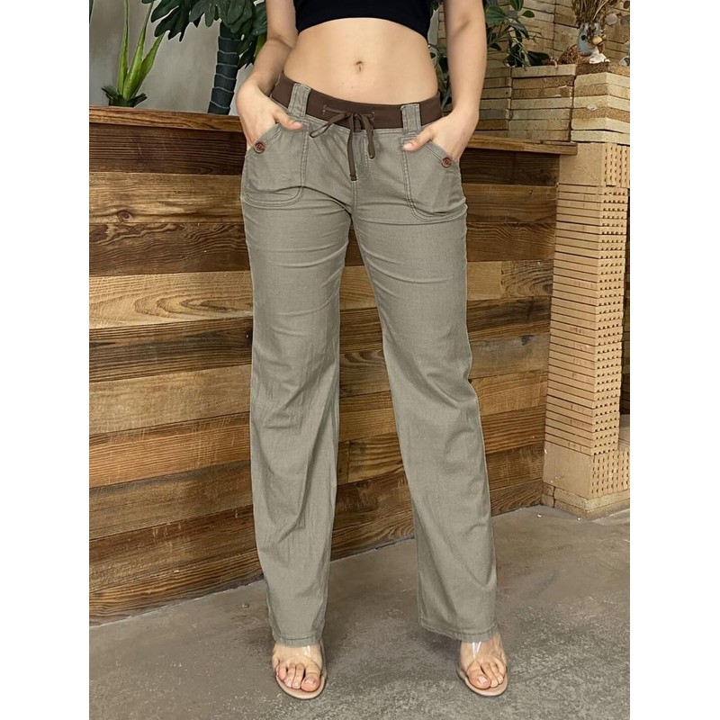 - Features: Low-waist,drawstring waist, cargo pants with pocket. The breathable material provides a comfortable fit; Pocket details add a trendy touch; Drawstring creat a relaxed and casual aesthetic; Cotton material makes it comfortable and easy on the eyes.Perfect for casual days out and versatile styling options. It's your perfect companion.