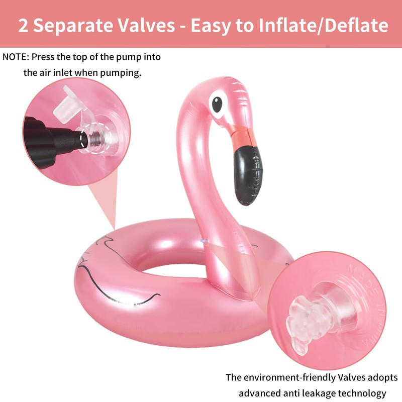 - [Easy inflation and deflation] -- Anti-leak technology, it is divided into 2 embedded air chambers, with improved valve, it is easier to inflate the swimming rings and reduce the likelihood of air leakage. After use, simply deflate, easy to carry (Note: do not charge the gas too saturated, recommend filling 90% to 95% of the gas)