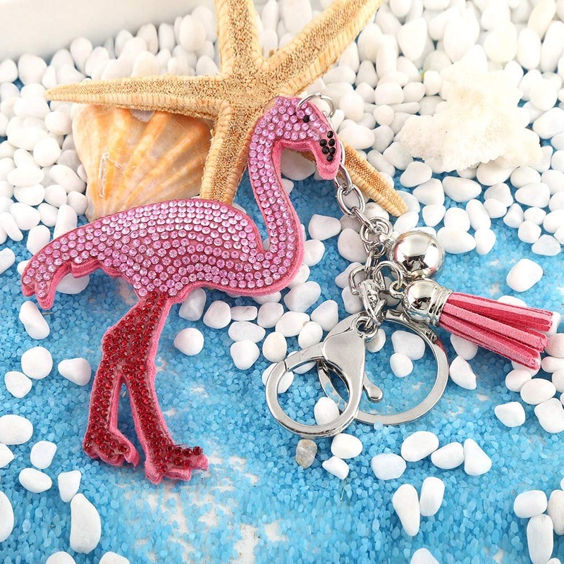 Flamingo Keychain, Elegant Crystal Key Chain Ring WithTassel Flamingo Keyring Bird Keyring Decor Gifts for Women