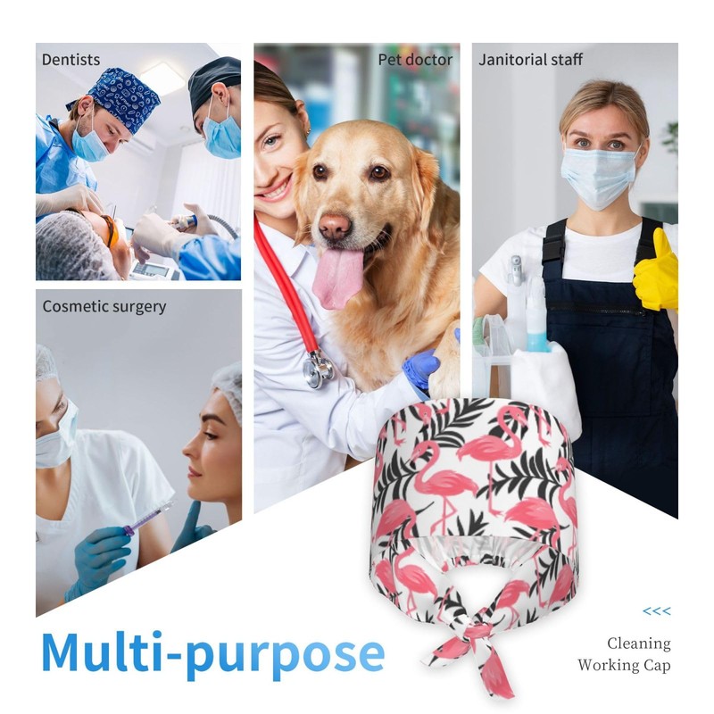Flamingo Pattern Working Cap Scrub Caps with Sweatband Adjustable Tie Back Hat Nurse Surgical Caps Unisex