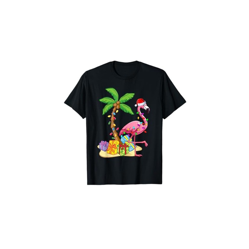 - Do you love flamingos? Looking for a special costume to celebrate Christmas? Get this design now. It shows flamingos wearing Santa hat, lots of gifts, palm tree with Christmas lights. Impress and surprise everyone with this outfit. Merry Christmas!