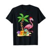 Flamingo Santa Hat Palm Tree Merry Christmas Lights T-Shirt
