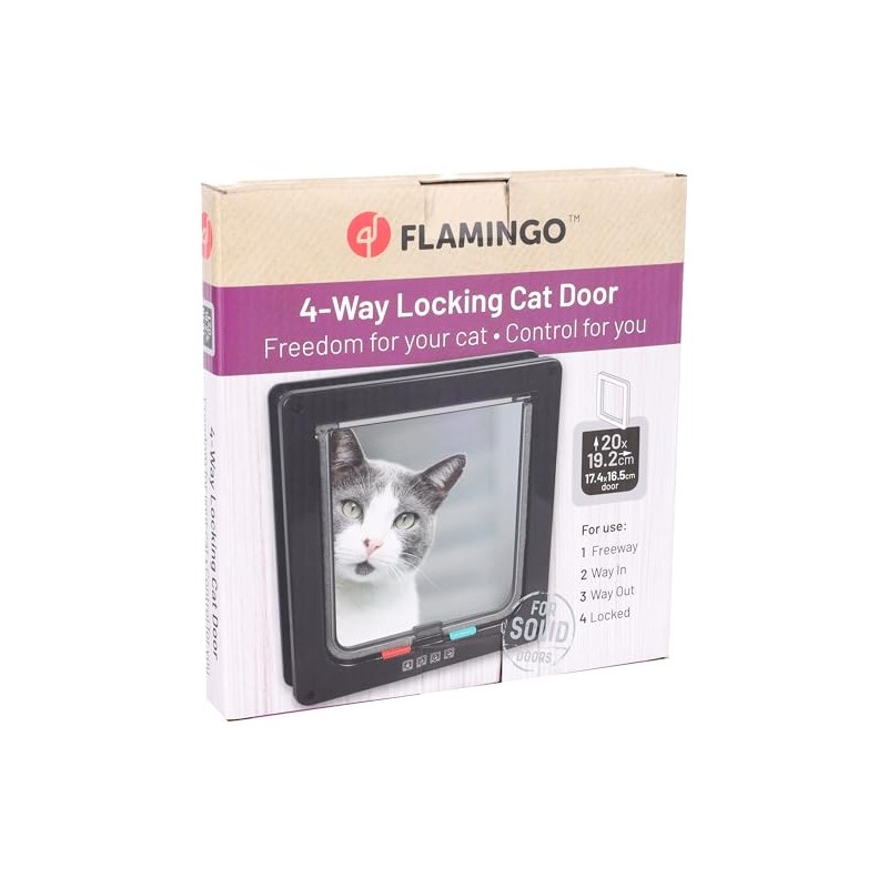 - The Flamingo Tami cat flap in black offers the perfect solution for pet owners who want to give their cats free access. With 4 adjustable positions, you have full control, and thanks to the silent and durable features, this cat flap is both functional and aesthetic. Installation is simple and quick so your cat can enjoy immediately. 👉 Ideal for cats who want to enjoy their freedom! /