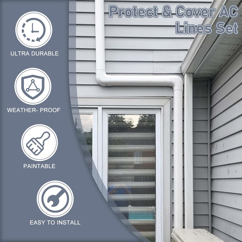 - 【Widely Compatible】This line set cover part is suitable for most central AC system, ductless mini split air conditioners and heat pump of 7000-24000 BTU. Please kindly check the model and size are the same as the kit before purchasing.