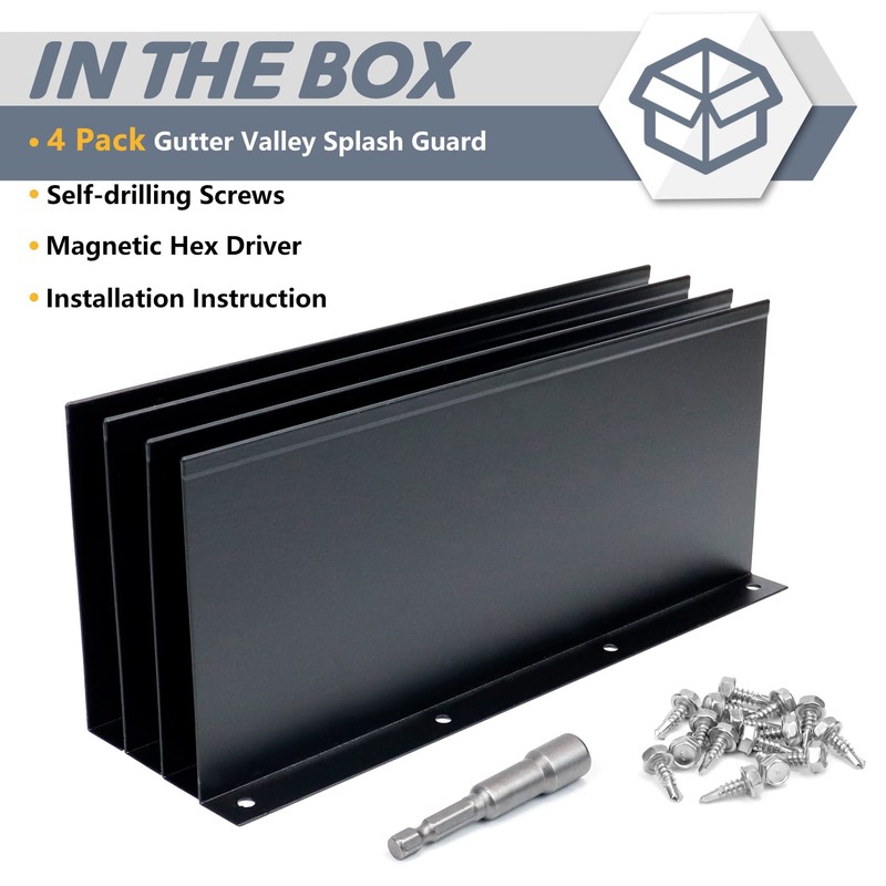 - In the Box - Package included 4 pieces of gutter splash guards and necessary hardwares. We provide more quantity and color options for your choice, please check the size and color needed before placing an order.