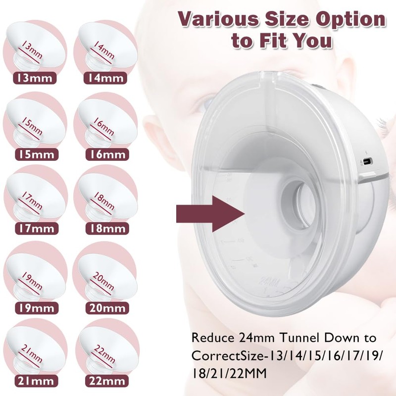 • 【Compatible with 24mm Shield】:6PCS 14mm flange inserts compatible with Momcozy M5/M9/M6/V2 Pro/V2 pro/S12 Pro/S9 Pro, MOMPINKE S12/MOMMED S21/Spectra/Medela/eufy/Elvie/Lansinoh/Paruu P10 breast pump, and most breast pumps with 24mm flanges/shields.
