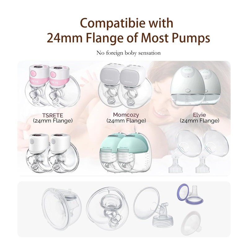 - Compatibility: Two of each size - Package comes with 8-pack flange inserts 15/17/19/21mm (2pc for each size) are breast pump accessories that can be used with most 24mm Shields/Flanges.Compatible with any S9 Pro/S12 Pro/S9/S12 wearable breast pump. (For example, compatible with Momcozy S12 Pro/S9 Pro/S12/S9 Hands-Free breast pump). Use with 24mm breast Shields for TSRETE/Medela/Spectra/Elvie/Willow/Bellaaby/Motif/Luna/AmedaMYA/Ainsir/Phanpy/Lulia/NaNaLazy/Luxlady/kidzio/eulumap/Teexin/Fisroa/KIS