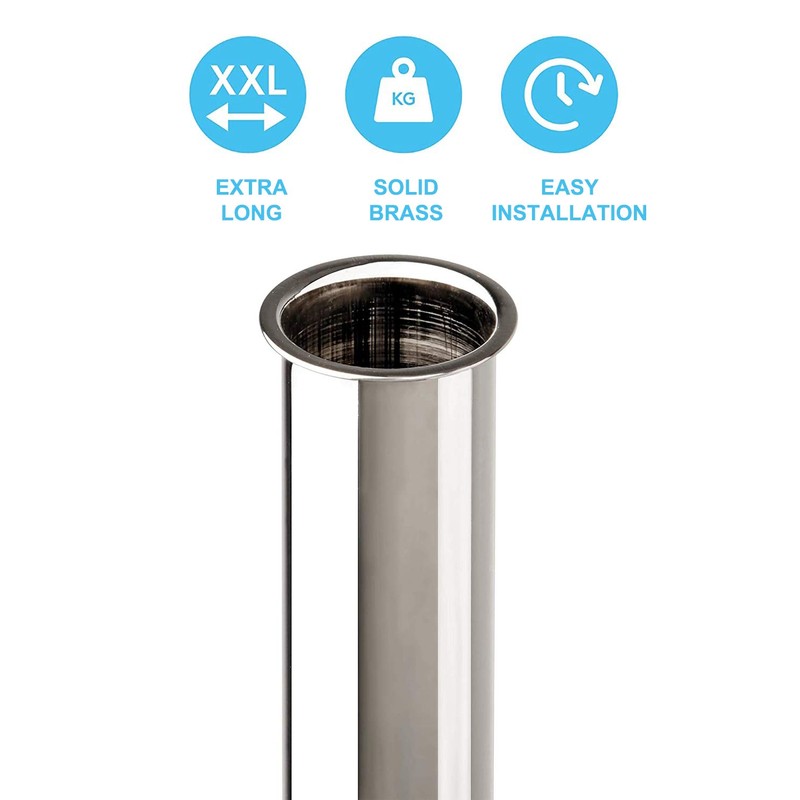Flanged Sink Tailpiece 1-1/4" OD x 12", Brass Extension Tube for Trap, Inlet Waste Pipe Tubular Drain Connections, Chrome