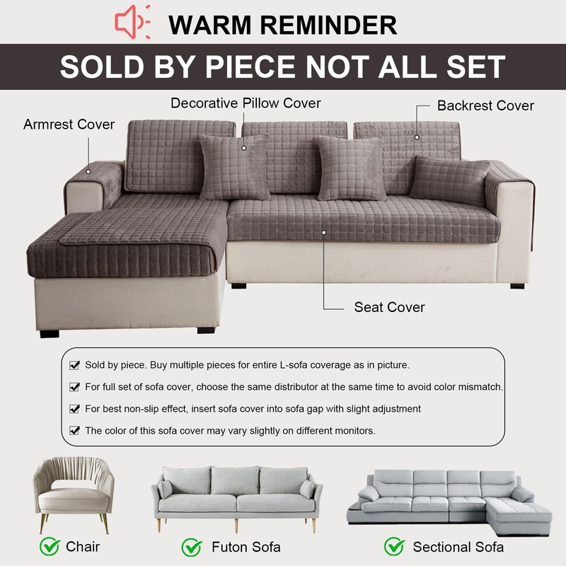 - Sold separately, not as a set: SHANNA sofa cover, corner sofa, L-shape, choose high-quality velvet fabric that feels soft and smooth and makes your sofa more comfortable and durable. Please refer to our measurement guide and measure your furniture before ordering. Sold separately, not as a set, good for your adjustable sofa and couch.
