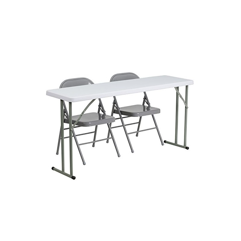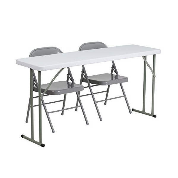 Flash Furniture 5-Foot Plastic Folding Training Table Set with 2 Gray Metal Folding Chairs