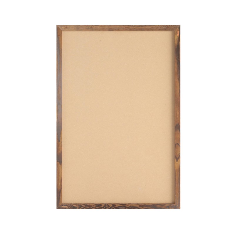 - RUSTIC CHARM: Torched brown wooden frame cork board with inlayed hardware can be hung horizontally or vertically
