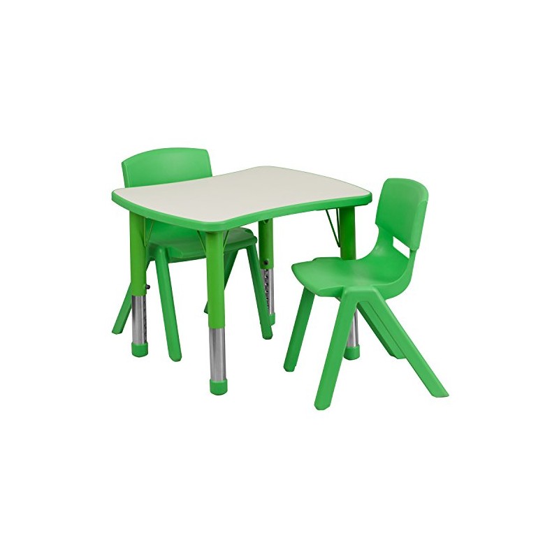 Flash Furniture Emmy 21.875''W x 26.625''L Rectangular Green Plastic Height Adjustable Activity Table Set with 2 Chairs