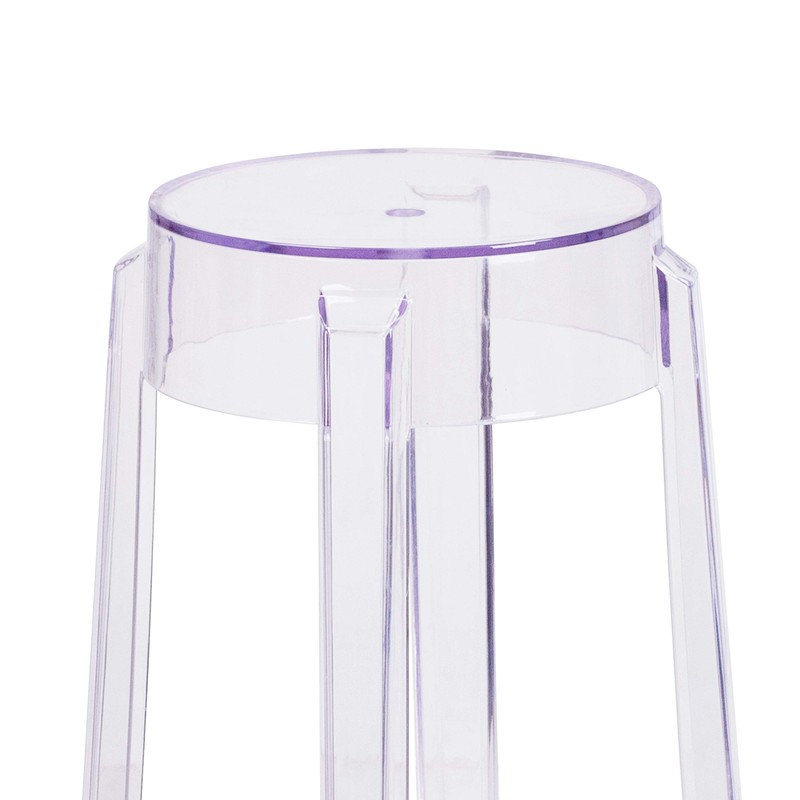 - Bring modern design, elegance and function to your home with this transparent crystal finish stackable counter height backless stool.