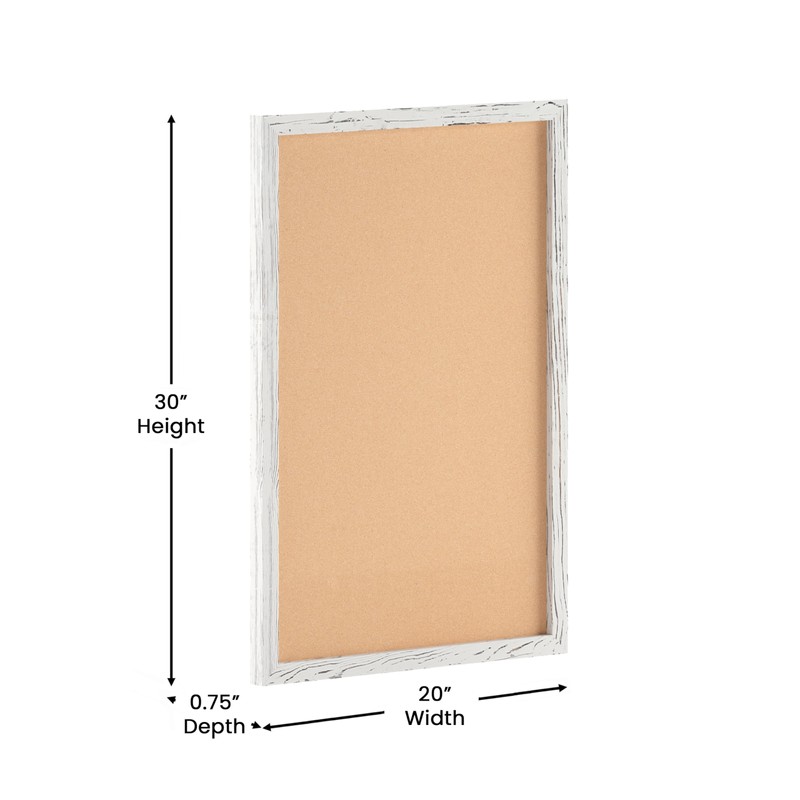 Flash Furniture Rustic Wall Mount Cork Board, for Home, Office, School, Comes with Wood Push Pins, 20" x 30", Whitewashed
