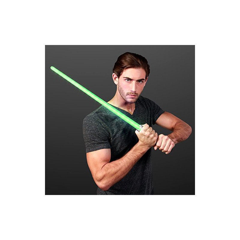 - FUN LOOK, GOOD VALUE: Light Up Toy Saber Sword's 28” Long with Bright Green LEDs ("Blade" is White When LEDs are Off)
