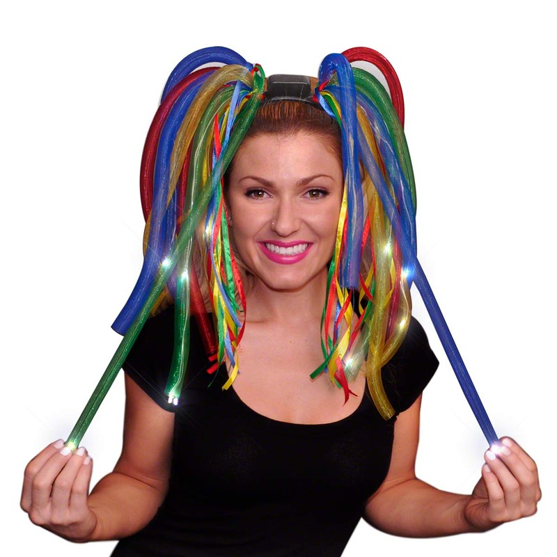 - INCLUDES: Twelve Comfy Headbands, Sprouting Colorful Springy Mesh Noodles like Pigtails, With Bright LED Lights