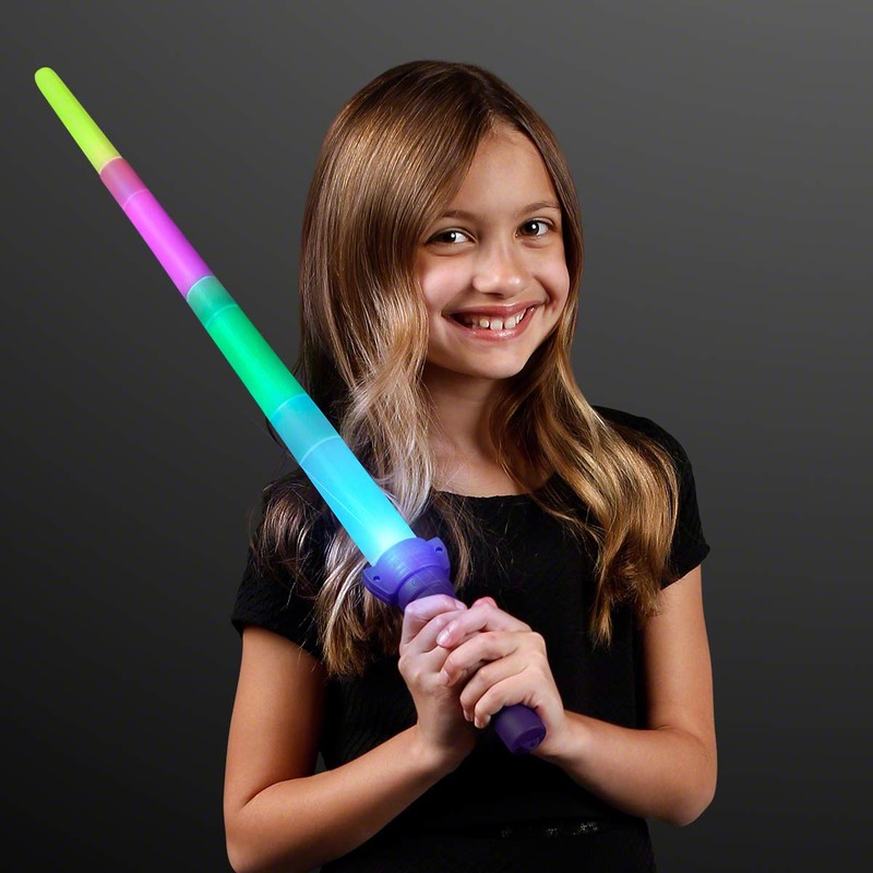 - FUN FEATURES: Sword Expands to 26” Long with Colorful Neon Shells & Bright LED Lights