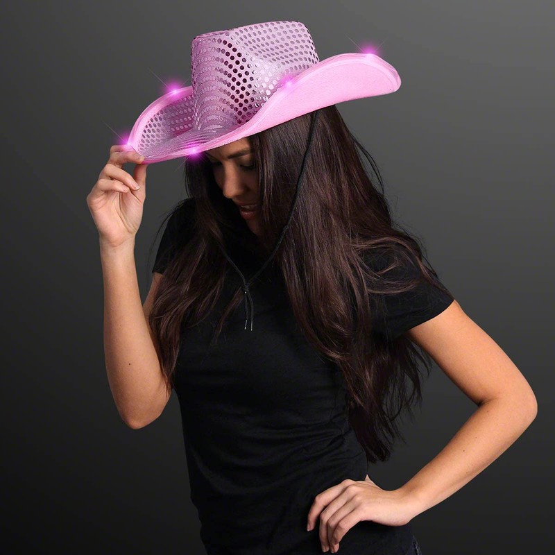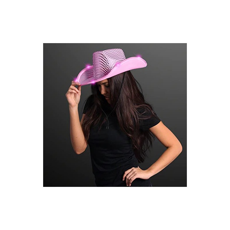 FlashingBlinkyLights Pink Sequin Light Up LED Cowboy Hat
