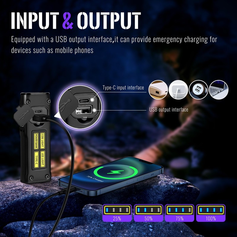 • Super Long Standby & USB Rechargeable Black Light: Built-in rechargeable battery, up to 6-12 hrs runtime. More convenient dual-port, Input USB-C charge this mini uv flashlight & Output USB charge your other device like dying phone, as an emergency power supply. 4 LEDs power indicator lights (25%-50%-75%-100%), reducing the inconvenience of sudden shutdown