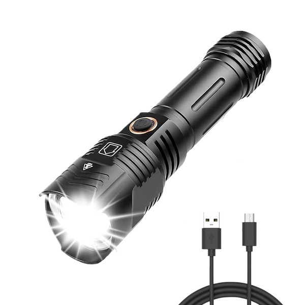 Flashlights Rechargeable High Lumens, 1200000 Lumens LED Tactical Flashlight, Powerful Super Bright Zoomable Handhed Flash Light Waterproof 5 Modes Best for Outdoor Camping