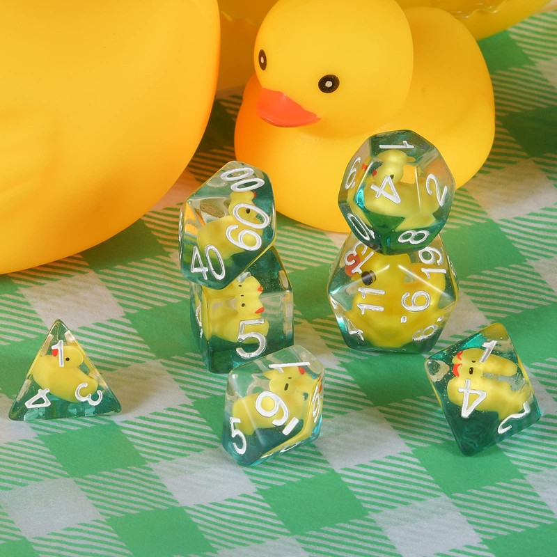 FLASHOWL Duck Dice Polyhedral & RPG Dice DND Dice Set with Duck Inside Polyhedral Roll Play Gaming D20 Dice Dungeons and Dragon Dice 7 Pieces