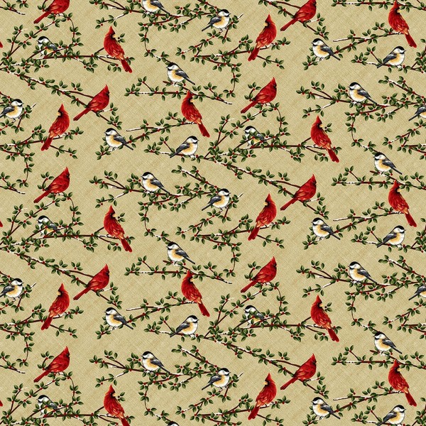 FlashPhoenix Quality Sewing Fabric - Christmas Fabric in Time Cardinal Branch Beige Yard 36 x 44 Inch