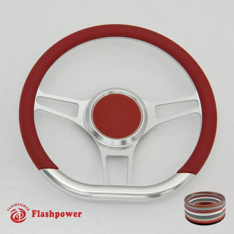 FLASHPOWER 14" D Type Billet Steering Wheel Red Half Wrap Chevy Ididit FlamingRiver