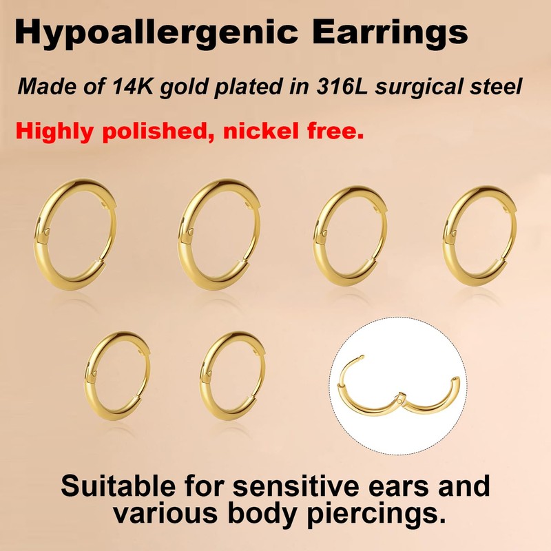 - [Hypoallergenic Material]--Made of 14K gold plated in 316L surgical steel. Highly polished, nickel free, Suitable for sensitive ears and various body piercings.