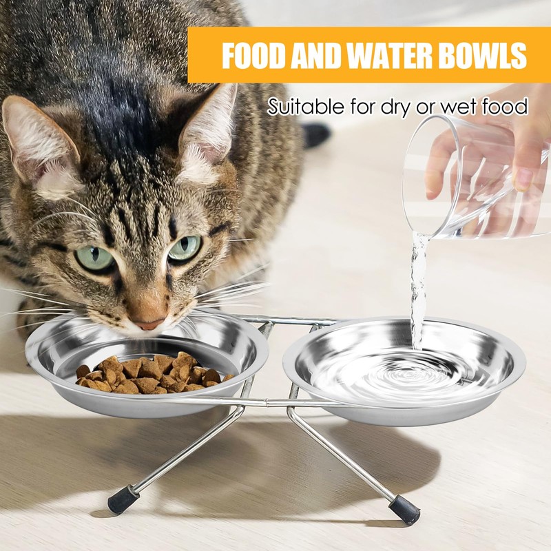 - Size fits most cats: the 2 sizes of the cat plates made of stainless steel are approx. 6.29 inches and 7.87 inches tall and are suitable for most age groups and cat breeds; the flat and wide design allows easy access to food without irritating your cat's sensitive whiskers.