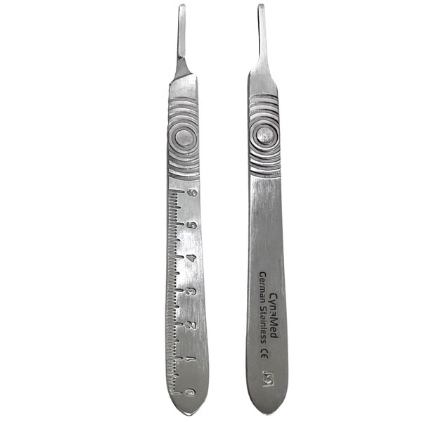 Flat Design Scalpel Handle with Measuring Scale (0cm to 6cm) Made of German Stainless Steel, for 20 Series and 10 Series Scalpel Blades, Hobby Knife Handle, Lab Instruments (2, Handle #3)